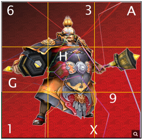 zuerst von links nach rechts die Zahlen und Buchstaben aus der oberen Reihe, dann aus der mittleren Reihe und schließlich aus der unteren Reihe miteinander kombiniert.